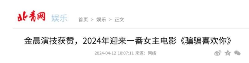 北青网:金晨演技获赞,2024年迎来一番女主电影《骗骗喜欢你》