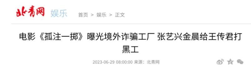 北青网:电影《孤注一掷》曝光境外诈骗工厂 张艺兴金晨给王传君打黑工