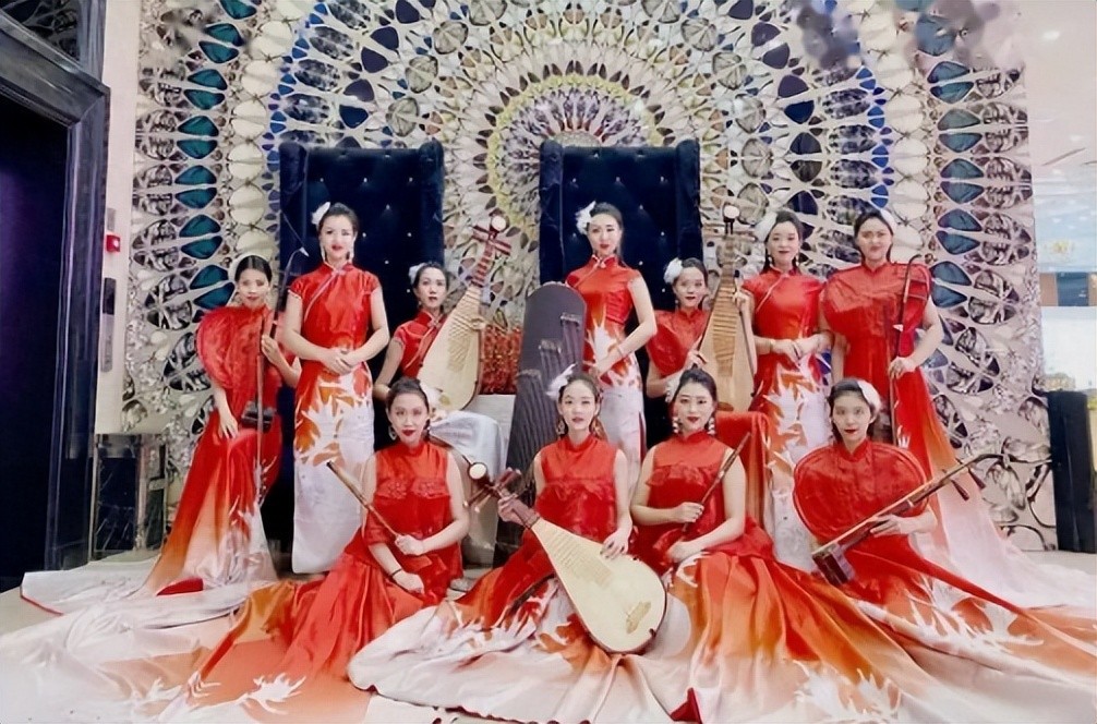 当音乐响起时,琵琶、古筝和二胡这些乐器的声音相互交织、互相辉映,仿佛构成了一片波涛翻滚的汪洋大海,让人不禁沉醉其中,难以自拔。