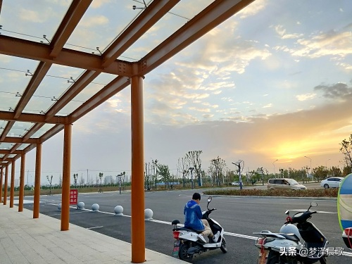 夕阳下,整个车站,站前广场给人空旷的感觉。