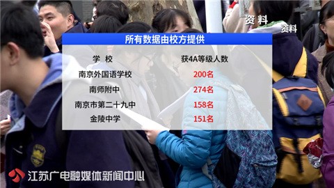 今年江苏“小高考”中,南外、南师附中、金陵中学、二十九中等高中参考学生获得“4A”等级的学生不在少数。其中,南外有200名同学获得“4A”,南师附中有274名同学,南京市第二十九中有158名同学,金陵中学有151名同学。