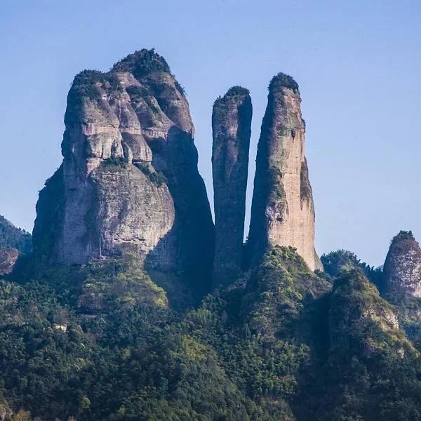 3. 江郎山:典型的丹霞地貌,以雄伟奇特的山峰和壮观的景色而闻名。