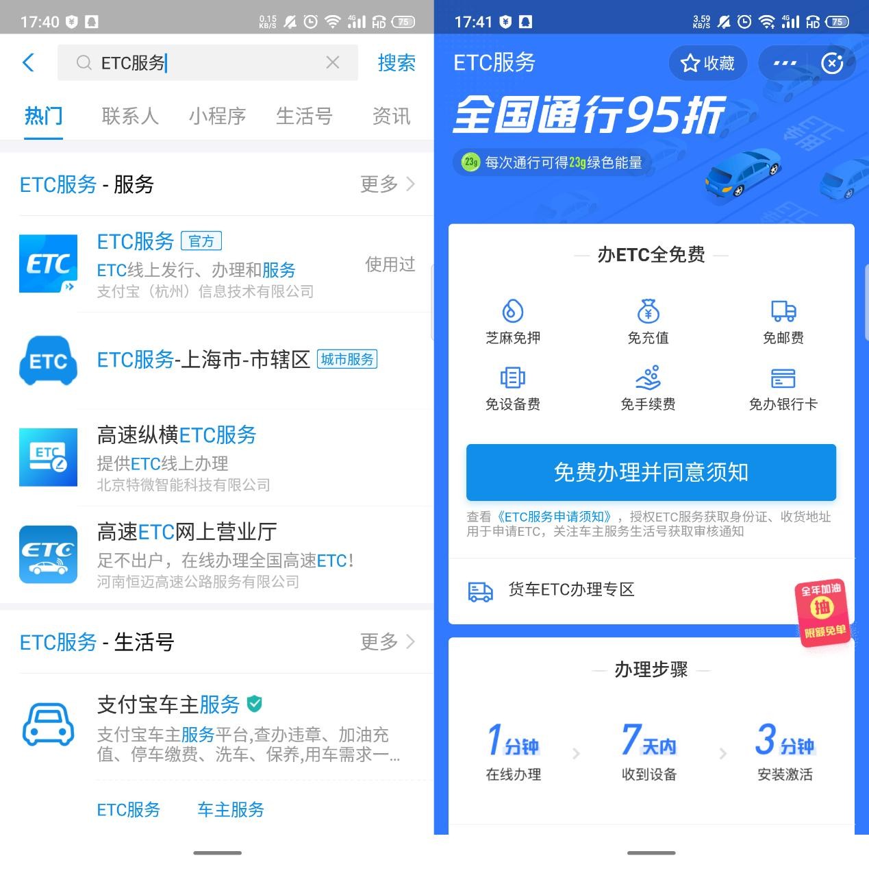 ETC对于常年跑高速的朋友来说非常实用,解决传统人工收费,有专属通道保障快速通行。但是一般都没时间去银行办理,那么怎么办呢?其实在打开支付宝找到"ETC服务"功能即可免费办理,快递到家非常的方便。