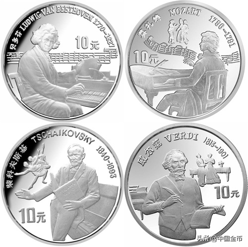 我们还可以在纪念币上欣赏到贝多芬的《欢乐颂》、莫扎特的《费加罗的婚礼》、柴科夫斯基的《天鹅湖》,还有威尔第的《假面舞会》。