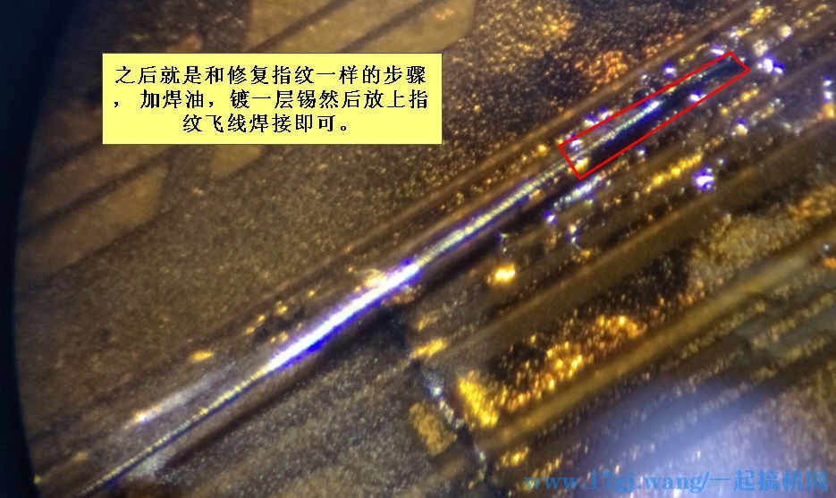 具体焊接步骤属于基本手工,如果您还不会,可以下载一起搞机网之前分享的手机维修基本功手工技巧11篇中自行学习并加以练习,用不了多久飞线技巧就能掌握,飞线不难,有耐心就行。