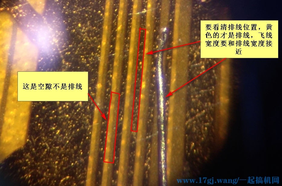 另外还要找准排线位置,像图中浅色黄色竖线是排线的空隙,不是排线,金黄色的才是排线。