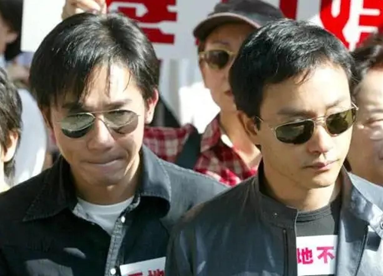 2002年,刘嘉玲被绑架,梁朝伟很难过,是张国荣陪着他一起抗议游行。而此时的张国荣已经身陷抑郁症的折磨,经历过一次自杀未遂了。