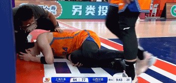 但在第四节的开局阶段,王哲林在一次反击当中遭到对方外援迪亚洛的追身封盖,在落地的时间段,迪亚洛压到王哲林的膝盖受伤离场。