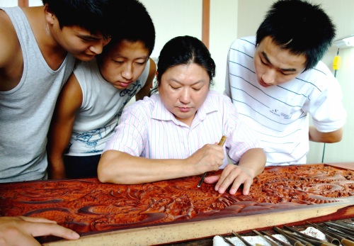 皖南木雕富有鲜明的地方特色,独特的雕凿技法是传统文化的典型代表。皖南木雕最早可追溯到唐宋时期,最初只是在版画的基础上逐步加深雕刻以深层次感,到了明代初具规模。清代乾、嘉以后皖南徽商兴起,巨儒商贾们竞相奢侈豪华,因而木雕的艺术格调也渐渐走于细腻繁琐,具有很高的艺术价值。传统手工平拉丝法,属于皖南木雕当中的一种绝技,并具有其独特的传统工艺,它是木雕作品成型后最关键的一道工序,也是皖南木雕区别于其他木雕的最为典型的特征,平凿拉丝法更为细腻、精到。它能使人物、花卉栩栩如生、龙飞凤舞等形态更加逼真,是完成精品木雕必不可缺少的技艺,刀具独特、雕刻难度大,俗称“一分十三刀”,就是在3.3毫米内拉十三刀丝纹。是其它普通刀具和手法代替不了的,这种绝技就有“传子不传女、传内不传外”的说法。手工平拉丝法,以刀代笔,技艺奇特,令人叫绝。