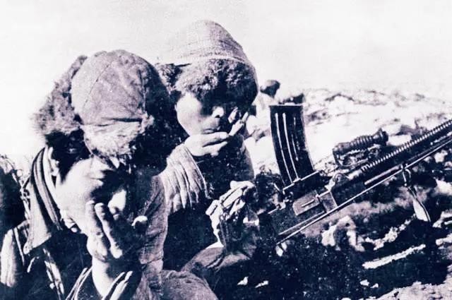 战壕里,志愿军战士一口炒面、一口积雪充饥