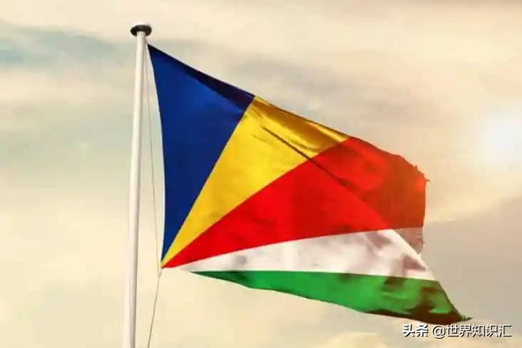 9. 塞舌尔国旗由从左下角散布的蓝色、黄色、红色、白色和绿色光线组成。蓝色代表天空和大海,黄色代表太阳,红色代表人民和他们的工作,白色代表社会正义与和谐,绿色代表土地和自然环境。