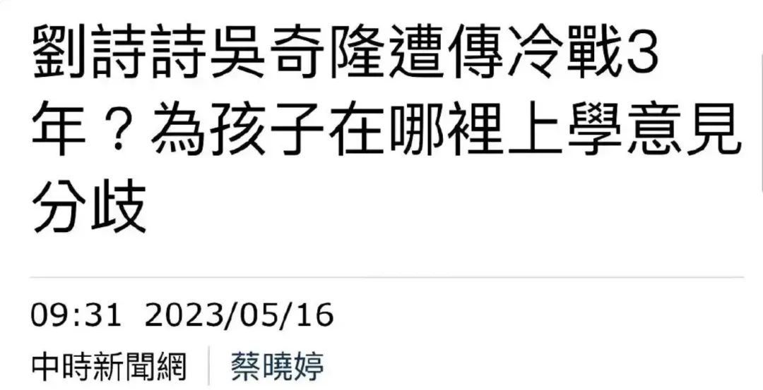 前两年,就有台媒爆料刘诗诗跟吴奇隆,因为孩子在哪边读书产生分歧,冷战3年。