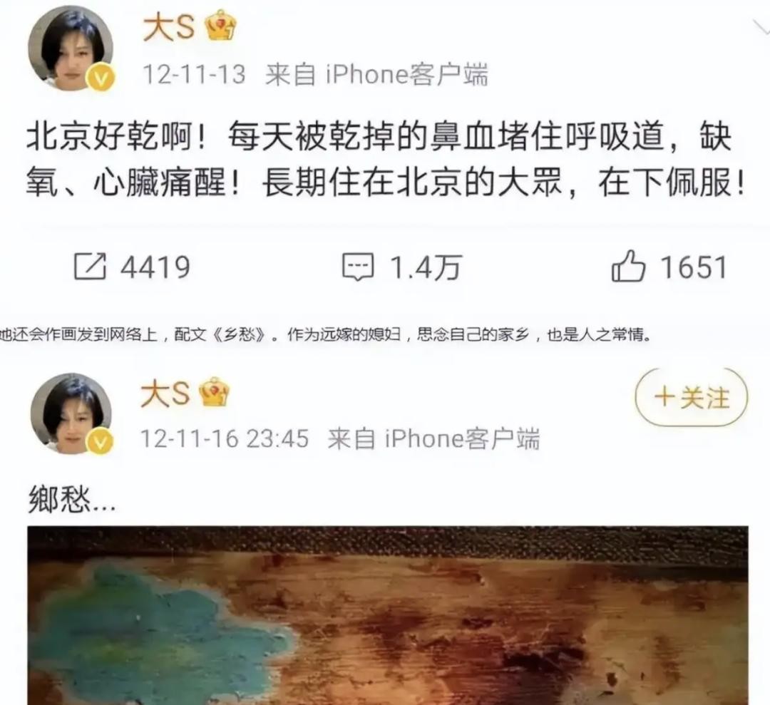 北京干燥的气候大S适应不了,常常流鼻 血、心脏被tong醒。