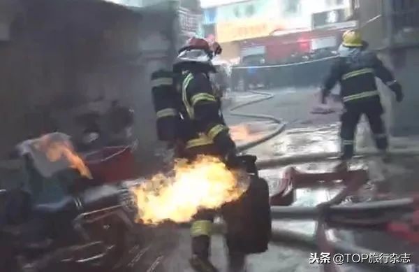 消防员徒手拎出三个喷火煤气罐