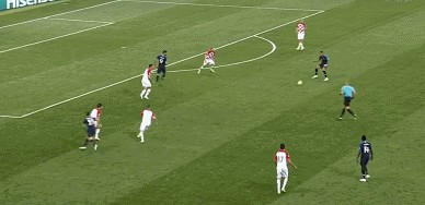 法国VS克罗地亚。第65分钟,姆巴佩大禁区弧顶外得球稍作调整右脚劲射破门。