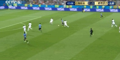 2018年俄罗斯世界杯1/8决赛,乌拉圭vs葡萄牙。比赛第61分钟,乌拉圭前场反击3V4,卡瓦尼拉边后接球兜出一脚弧线,皮球飞入网窝!葡萄牙门将帕特里西奥鞭长莫及!