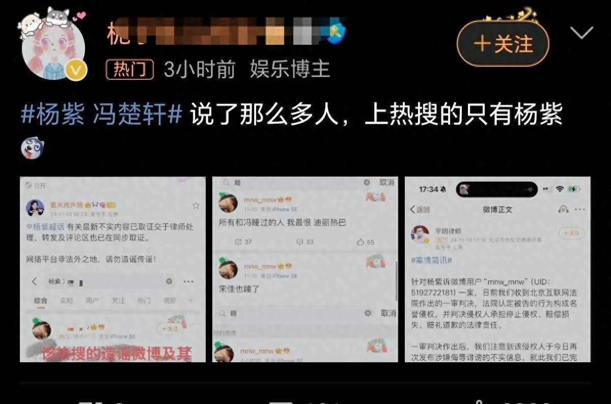 这条动态引发了大量关注,内容描述了一次杨紫与冯楚轩的饭局,称两人从简单的用餐转为“试戏”,并且该网友用极其恶劣的语言详细描绘了所谓的“过程”。但令人大跌眼镜的是,女网友的爆料语气和内容明显不稳,甚至前后矛盾,言辞也极为粗俗。更让网友心生质疑的是,该女网友此前多次恶意中伤赵露思、迪丽热巴等女星,每次皆迅速撤回。她甚至因造谣杨紫,被判道歉并予以赔偿。