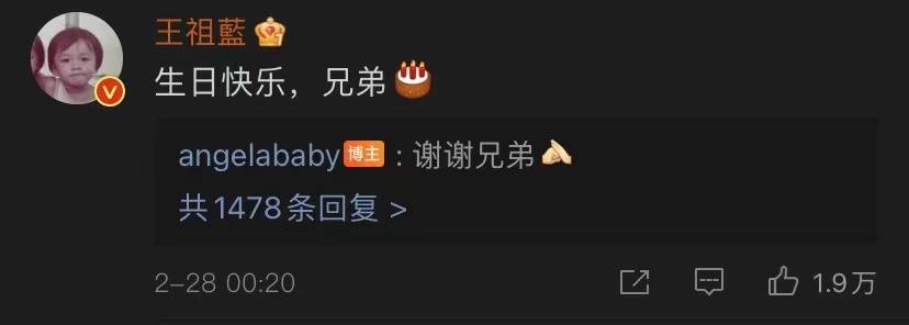 不过令人惊讶的是,baby的跑男兄弟团暂时还没有人发文为她庆祝生日,只有已经退出跑男的王祖蓝在评论区送上了一句简短的祝福。两人早年都在香港奋斗,还一起合作了电影,早已经是老相识了。