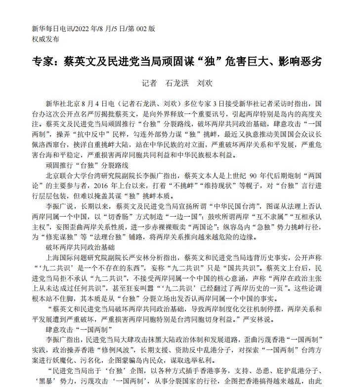 除此之外,蔡英文和民进党还大力煽动民粹主义,鼓吹“抗中反中”的思想,挑唆两岸对立关系,并且试图在文化、历史和教育上都与大陆割裂开来,而对于岛内一些呼吁两岸统一、和平的理性人士,则使用所谓的国安法、反渗透法来进行打压恐吓。