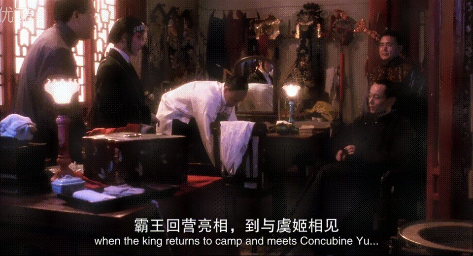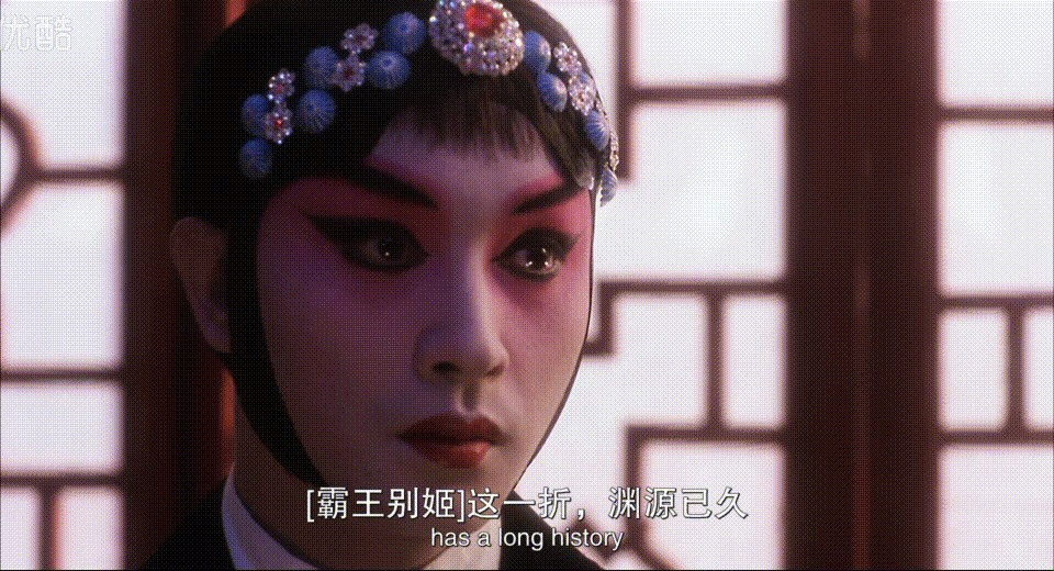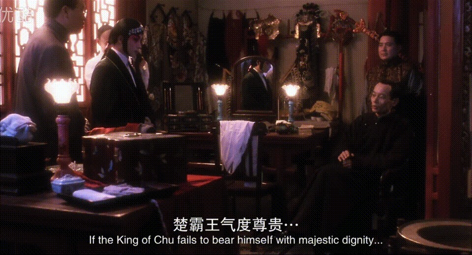 四爷眼睛上下打量着程蝶衣,不似男人看男人,倒像是爱慕的眼光:“霸王别姬这一折渊源已久,本是从昆剧老本《千金记》里脱胎出来,很多名家都在这上面唱哉过,独你程老板的虞姬渐入纯青之境”