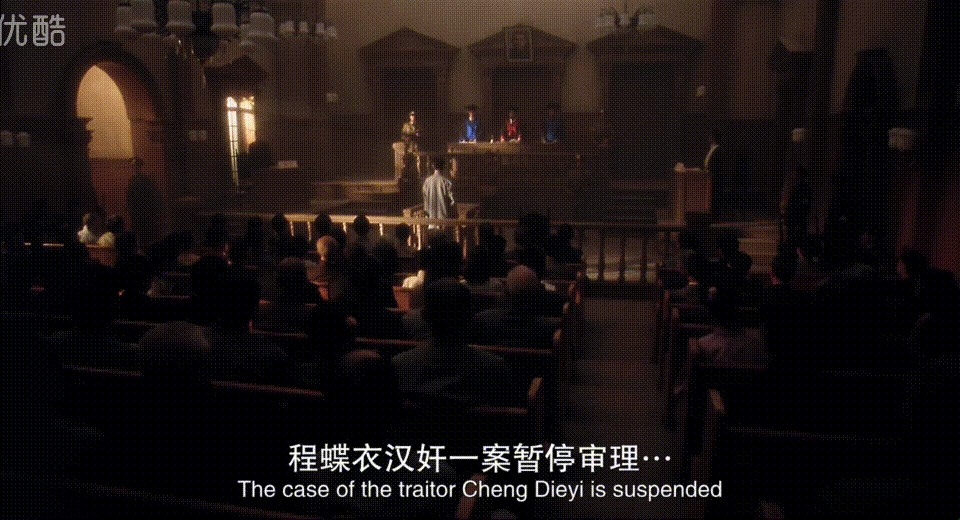 二是献出程蝶衣,也为自己谋出路。在法庭上程蝶衣不买袁四爷的帐,眼看叛国罪就要做实,却来了几个军官,带着一份文件。