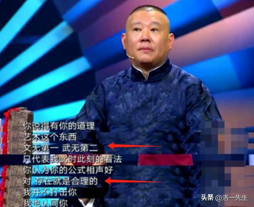 不过,郭德纲还是很照顾两人的颜面,先用“文无第一”来消除矛盾,后用“存在即合理,但不适合这个舞台”来安慰两人。