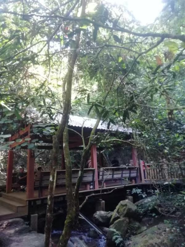 肇庆鼎湖黄金沟生态景区,是典型的亚热带雨林,植被浓密,碧湖、青山、绿竹、老屋、伴你远离尘嚣熙攘。位于肇庆市鼎湖区凤凰镇竹坝村九坑河水库主干流的源头,拥有华南最大的亚热带原始丛林瀑布群“黄金九瀑”。景区距肇庆市鼎湖区凤凰镇8公里,距肇庆28公里,景区山林面积260平方公里,区内水库面积6.7平方公里,水深30米。距离广州、佛山市区100公里以内,与“岭南四大名山”鼎湖山风景区一脉相承,森林覆盖率98%以上,负氧离子含量每立方厘米达3.5万个,是广东省级森林公园,被誉为“天然大氧吧”、岭南避暑胜地、大湾区森林探险旅游第一站。山高林密,古木葱茏,鸟语花香,动植物2000多种,是集旅游、休闲、养生、度假及自然科普教育为一体的生态旅游胜地,有世界长寿之乡美称。因当地村民曾在此采沙掏金而得名“黄金沟”。