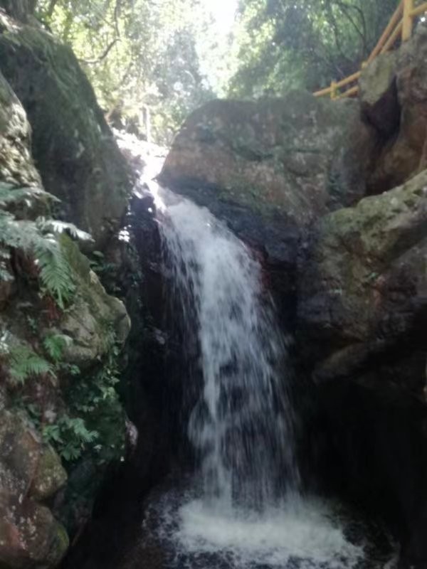 肇庆黄金沟生态景区内“曲径通幽春寂寂,翠竹绿树水潺潺”,山势层恋叠嶂,巍峨峻秀。峡谷两侧悬崖林立,古树森森,山花遍地,古桫椤夹道而生,远古的千层岩,巍然耸立,历经岁月的磨洗,斑驳苍凉,终年水渍淋漓,踩着鹅卵石……穿行过傍溪而上的林荫小径,在峡谷中溯溪而上,瀑布纷叠而来,或潺潺慢淌或雪花飞溅,清洌的溪流,缠绕的古藤,遍生于磷磷乱石间的苔藓,不知名的小鱼,蠢蠢蠕动的山螺……