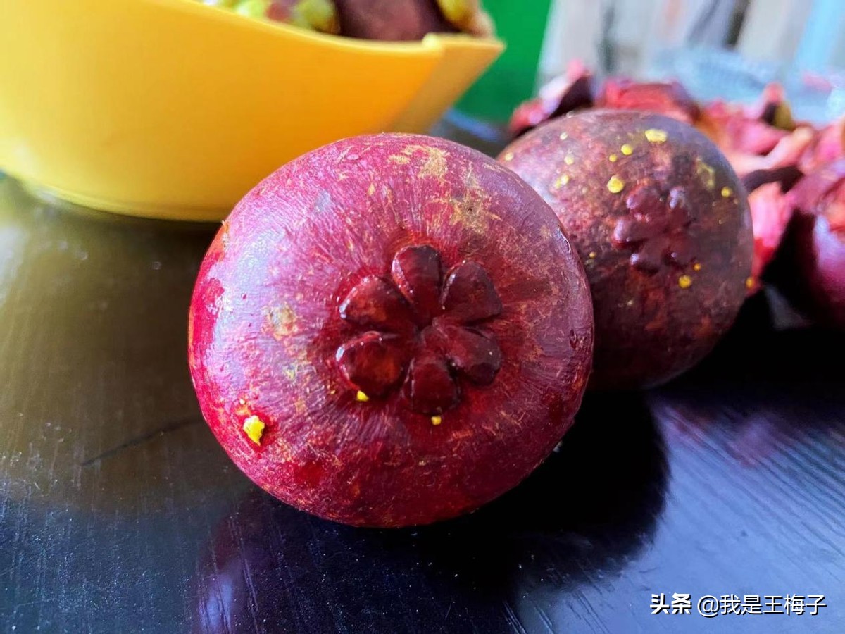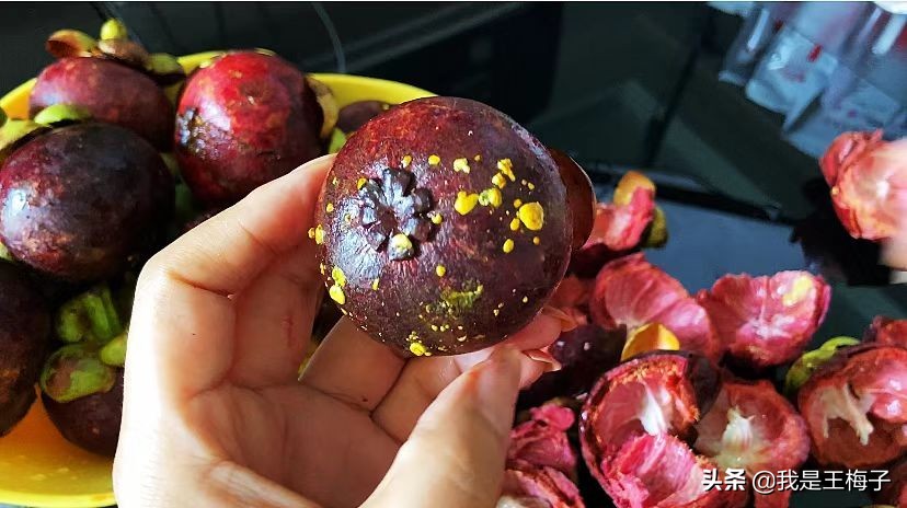 另外,山竹外皮上多多少少有黄色点点,不是什么特别东西,是山竹在自然生长中分泌出来的自我保护的果胶,正常现象。