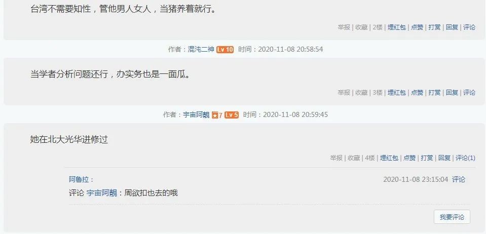 前面我们将网络上对雷倩女士的评论划分为天涯论坛派和知乎派,实在是关系到一个人的认知是否有局限,前者用自己的有局限的认知对一个人进行偏见评论,而后者,是认知到自己的局限,并折服于雷倩女士的学识,并连赞自己被打开了视野,当然,笔者不在此对不同平台的用户属性进行剖析,但却更加欣赏后者。