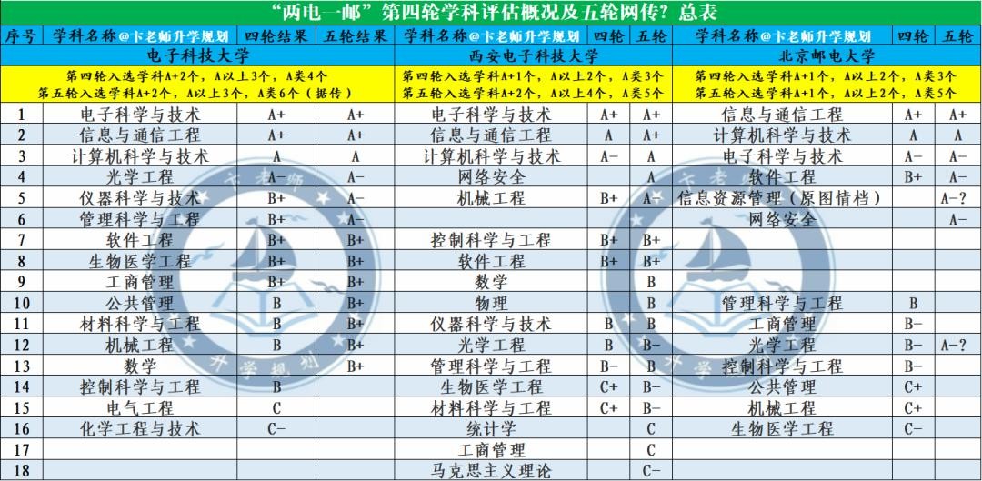 高手过招就看顶级学科!电子科大与西电第五轮学科评估电子与通信均入选A+学科,反观北邮依然是仅有通信入选A+。