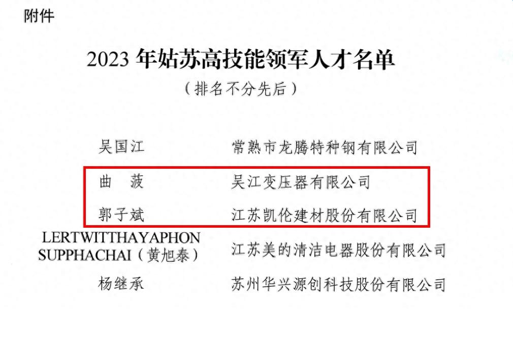 近年来,吴江区不断完善技能人才“引育留用”全周期、服务管理全流程,大力开展“技能吴江”职业技能提升行动,持续激发企业主体作用和人才内生动力,创设让技能人才更有荣誉感、获得感的人才成长生态。累计培育全国技术能手4人、江苏大工匠2人、江苏工匠8人、江苏省企业首席技师(卓越技师)19人和苏州市姑苏高技能领军人才15人。