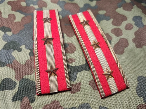 昭和十三年的九八式各个军衔领章的大小并无差异(均为长40毫米,宽18毫米)。1943年,日军对军衔标志同样进行了修改,军衔肩章大小开始有了变化,变化后的军衔通常称为“三式军衔”。将校、准士官的领章长度统一规定为45毫米, 宽度则各有不同:将官是30毫米,佐官是25毫米,尉官准士官是20毫米。与此同时,随着肩章的面积扩大,星徽也比之前更大了。下士官的领章规格为长40毫米、宽20毫米,士兵的领章与昭和十三年的九八式保持不变,还是长40毫米、宽18毫米。关于星徽的排列,昭和十三年制式以前,星徽在领章上是等间隔排列,军衔变动时需重新购买领章。昭和十八年制式对此做了修改,星徽从领章的边缘开始排列,每升一级,则在其附近加上一颗星。