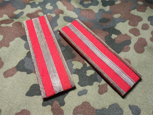 二战结束前,日军军衔也发生过一些变化:1938年(昭和十三年)之前,日军常服军衔使用肩章;1938年之后则使用领章(日本称为“襟章”),通称“九八式军衔”。日本陆军军衔分为长官(军官)、长官相当官(军佐)、普通士兵、专业士兵四类,其中长官分将官、上长官(佐官)、士官(尉官)三等九级,长官相当官分将官相当官、上长官相当官、士官相当官三等八级,普通士兵分准士官(准尉)、下士官(军士)、兵三等七级,专业士兵分准士官相当官、下士官相当官、兵三等七级。九八式军衔用领章代替了肩章,以明治四十五年制式肩章为基础,只对其形状做了变动:将官、佐官、尉官、准士官统一为平行四边形,长40毫米,宽18毫米;下士官兵则为长方形(俗称“座布团”),同样长40毫米,宽18毫米。1940年,日军新增了兵长军衔并制定了相应领章,同时伍长勤务上等兵军衔被废除。