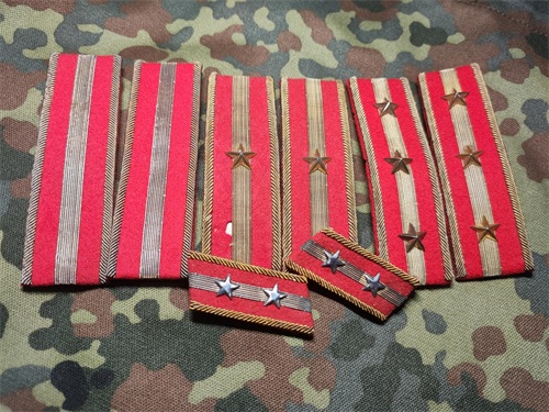 士官共三等:将官——大将、中将、少将;佐官——大佐、中佐、少佐;尉官——大尉、中尉、少尉。士兵分三等:准士官——准尉;下士官——曹长、军曹、伍长;兵——兵长、上等兵、一等兵、二等兵。