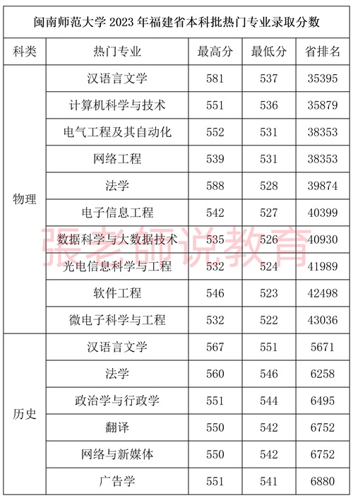 最高分606!闽南师范大学2023年录取分数统计