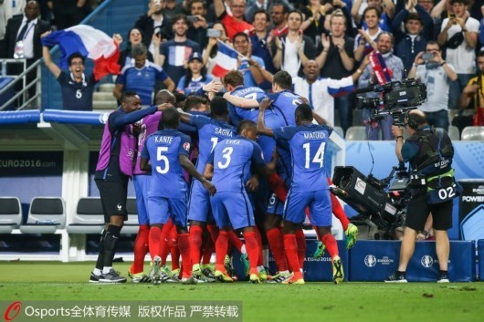 人民网北京6月11日电(杨磊 实习生张华琴) 北京时间6月11日凌晨03:00,2016年欧洲杯正式拉开帷幕,在揭幕战中东道主法国2-1战胜罗马尼亚。比赛的上半场双方互交白卷,下半场,吉鲁头球破门打破僵局。随后,埃弗拉犯规被罚点球,斯坦库扳平比分。比赛结束前,帕耶上演世界波绝杀,战胜罗马尼亚,赢得开门红。