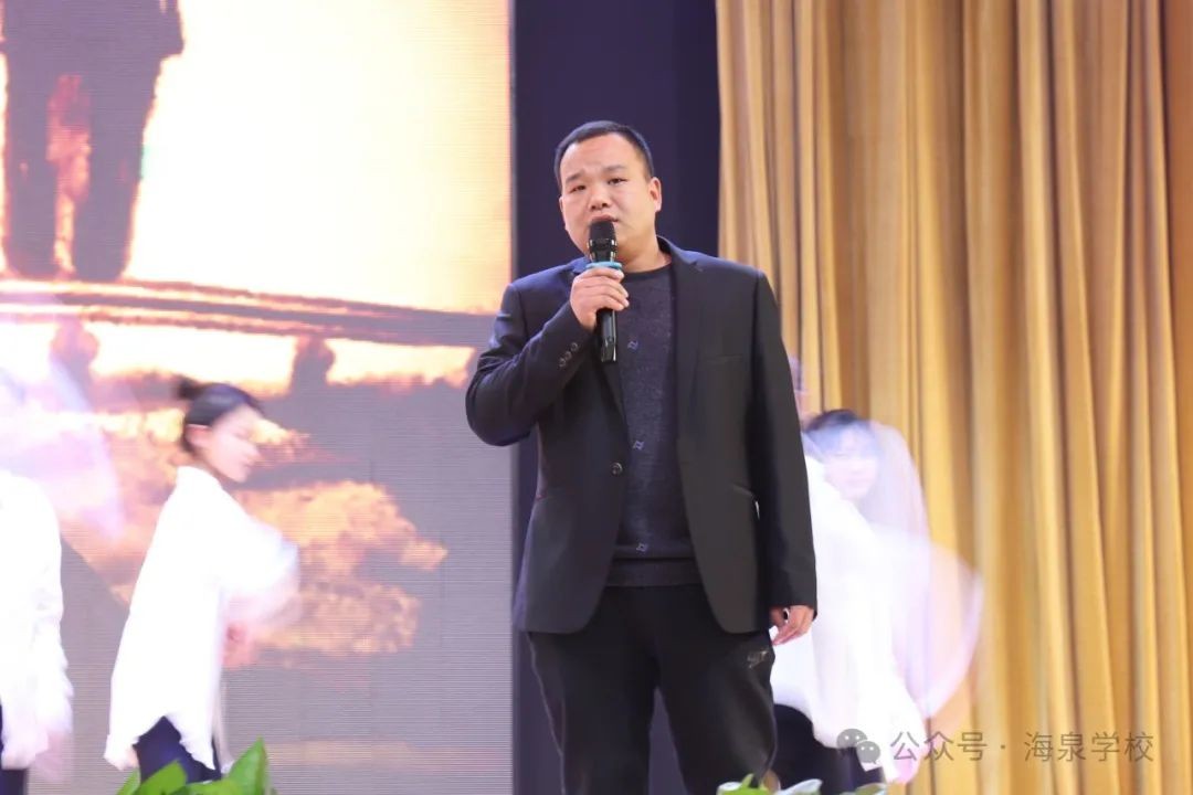 初中部粱江梅校长讲话:新的一年,愿我们都能追逐光,成为光,照亮前行的方向;发现美,传承美,绽放自己独特的美;向下扎根,向上生长,开出属于自己独一无二的花。她希望每个孩子都能够心中有梦想,带着新年的曙光,奔赴心之所向,与世界温暖相拥,演绎自己精彩的人生。