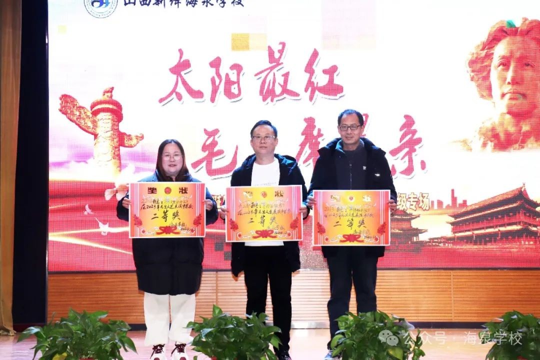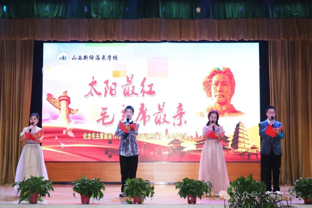 走过岁月长河,我们曾燃起星星之火;抚过明月清风,我们曾许下盛世之愿。12月25日晚,歌声飞扬,旋律激昂,九年级“太阳最红,毛主席最亲”主题晚会在我校实验楼四楼演播厅隆重上演。