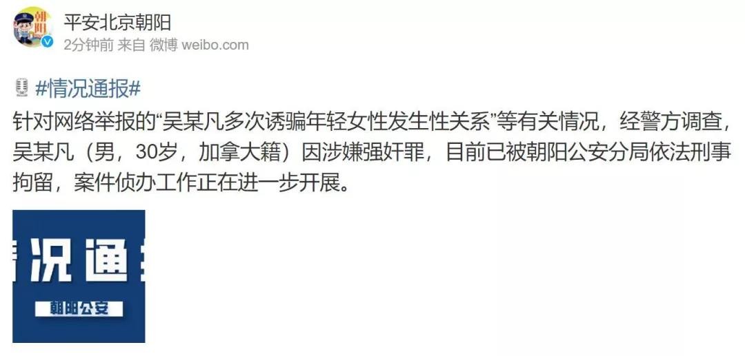 近日,当红明星吴亦凡被爆丑闻,以都美竹为首的受害者组成联盟,直接公开了吴某的违法行为,大批吃瓜群众被颠覆三观。就在昨天7月31号,警方发出通报宣布,吴亦凡因为涉嫌强奸罪,已经被依法刑拘。消息传来轰动全网。
