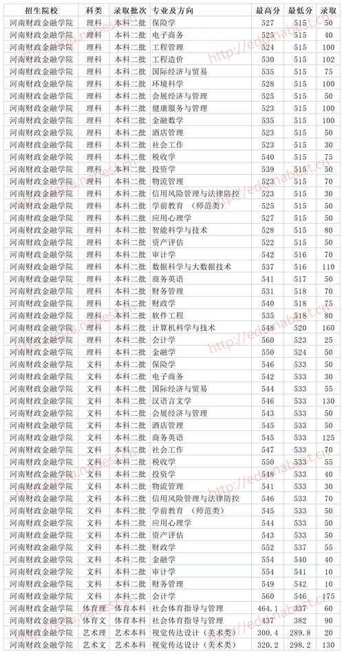 河南二本大学 河南财政金融学院2020年省内各专业录取分数线
