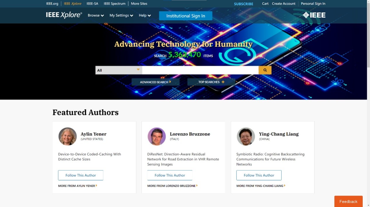 近日,我校通信抗干扰技术国家级重点实验室梁应敞教授荣登IEEE Xplore封面作者。IEEE Xplore是涵盖IEEE所有领域,如电子学与器件、电气工程、计算机科学、通信工程等的核心数据库,包括300多种IEEE期刊、1900多种全球会议、11000多种国际技术标准、近5000种电子书籍以及500多种在线课程等。IEEE Xplore定期精选IEEE相关领域知名学者成为其封面作者并介绍其最新研究成果,旨在推动相关领域发展。