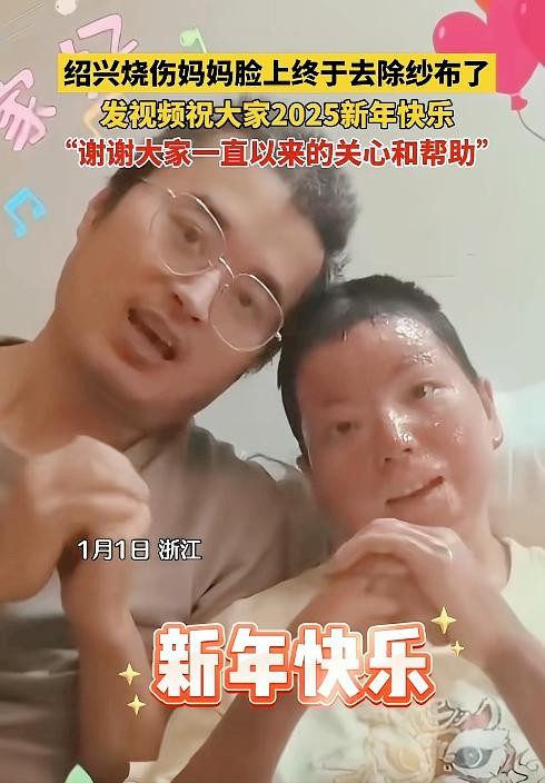 2025年1月1日元旦,黄家梅和丈夫录制了一段视频,首次向公众报平安。视频中,她已经揭掉纱布,虽然脸上烧伤痕迹依然清晰可见,但精神状态非常不错。