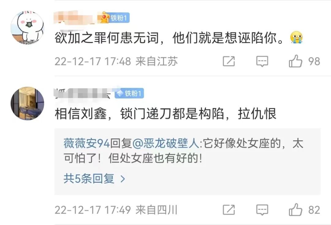 随手一翻,不少粉丝在下面留言,维护饱受委屈的刘鑫,实现自己慧眼识人的“救世主”情节。