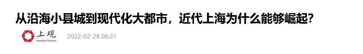 上观新闻,2022-02-28,关于《从沿海小县城到现代化大都市,近代上海为什么能够崛起?》的报道