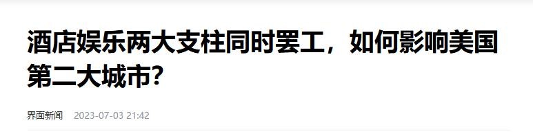界面新闻,2023-07-03,关于《酒店娱乐两大支柱同时罢工,如何影响美国第二大城市?》的报道