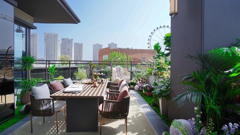 国风下叠舒阔庭院,尽享200%得房率;城芯上叠星空露台,得房率高达180%
