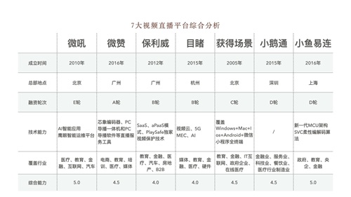 保利威、获得场景在教育领域深耕多年,针对在线教育场景直播有一站式解决方案;目睹和小鹅通在场景覆盖上相对较少,综上这些平台更适合中小企业。