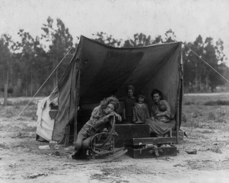 中西部的农民更惨,历来经济萧条时,没有最惨,只要更惨,而且更惨的一般都是底层弱势群体-农民,由于农产品价格的暴跌或卖不出去,宾夕法尼亚州的农民只能吃野草根、蒲公英;肯塔基州的人吃紫罗兰叶、野葱、勿忘我草、野莴苣以及一向专给牲口吃的野草,城里的人相比或许好一些在码头上徘徊等待,一有腐烂的水果蔬菜扔出来,就上去同野狗争夺。蔬菜从码头装上卡车,她们就跟在后边跑,有什么掉下来就捡。中西部地区一所旅馆的厨师把一桶残菜剩羹放在厨房外的小巷里,立即有十来个人从黑暗中冲出来抢。人们还看到,有人全家走进垃圾堆捡骨头和西瓜皮来啃。因为蛆虫多,芝加哥市有一个寡妇在捡东西吃时总是先把眼镜摘掉,眼不见为净。这种景象我们现在可能属实无法想象,但在上世纪30年代,美国人却在亲身经历。
