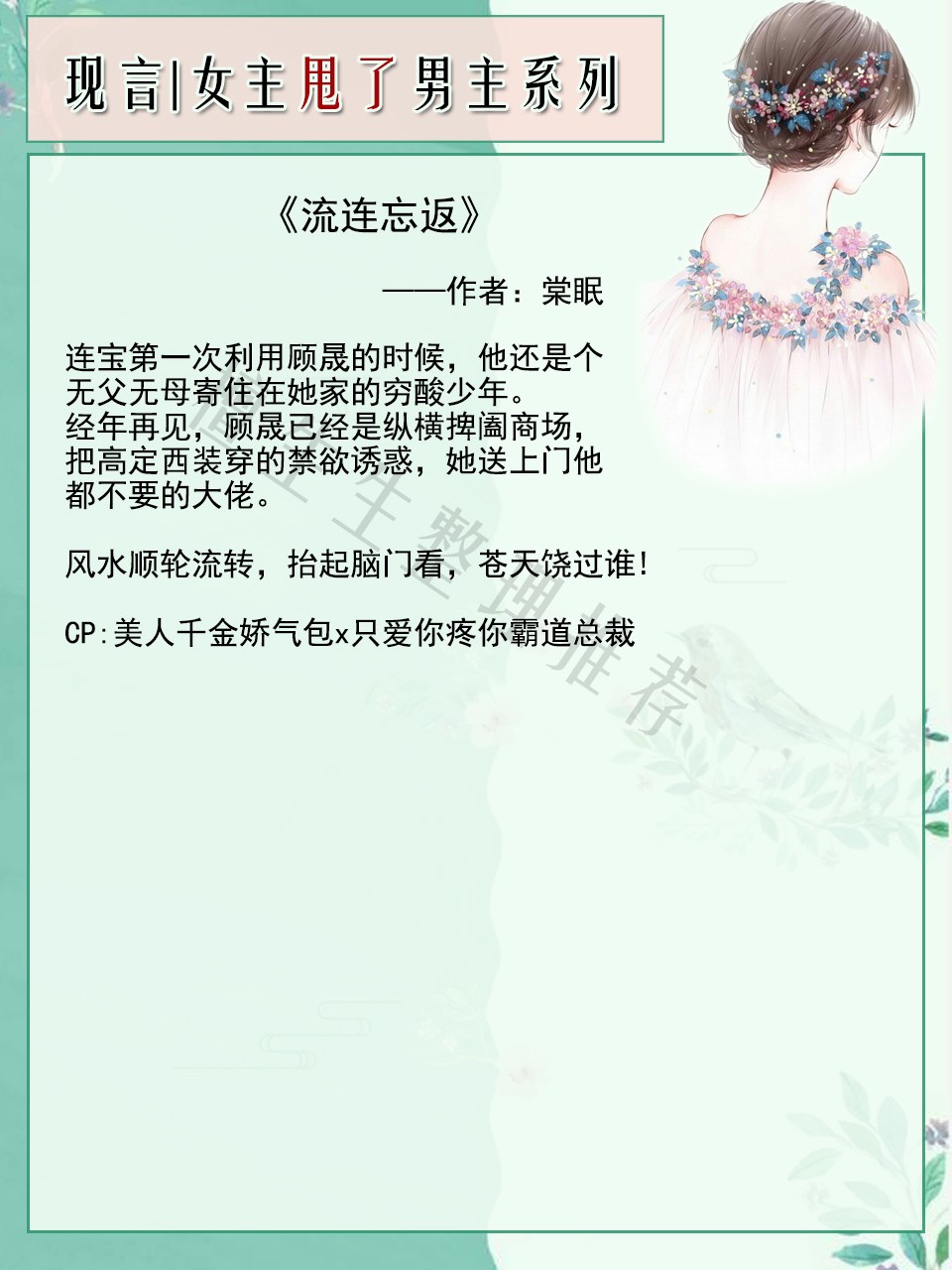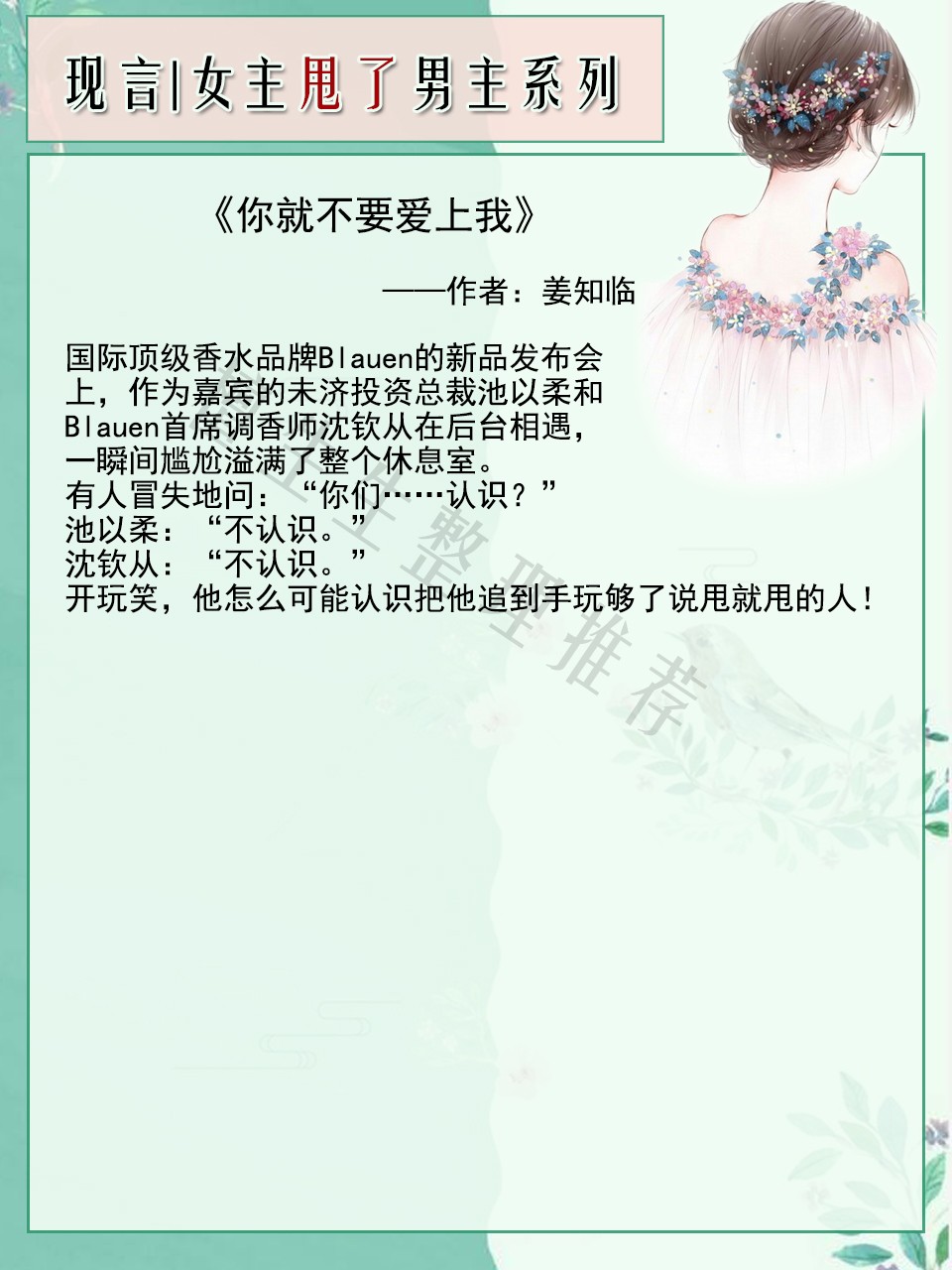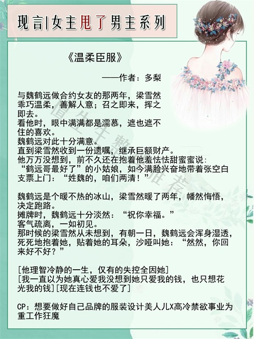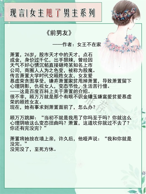 亲们,今天来推一系列有关于“渣女主先撩后甩男主,多年后重逢,再续爱恨情仇”的言情小说吧!